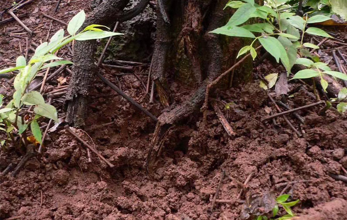 治理前,土壤因白蚧蟲侵害而貧瘠失活,嚴重影響胡椒樹生長。
